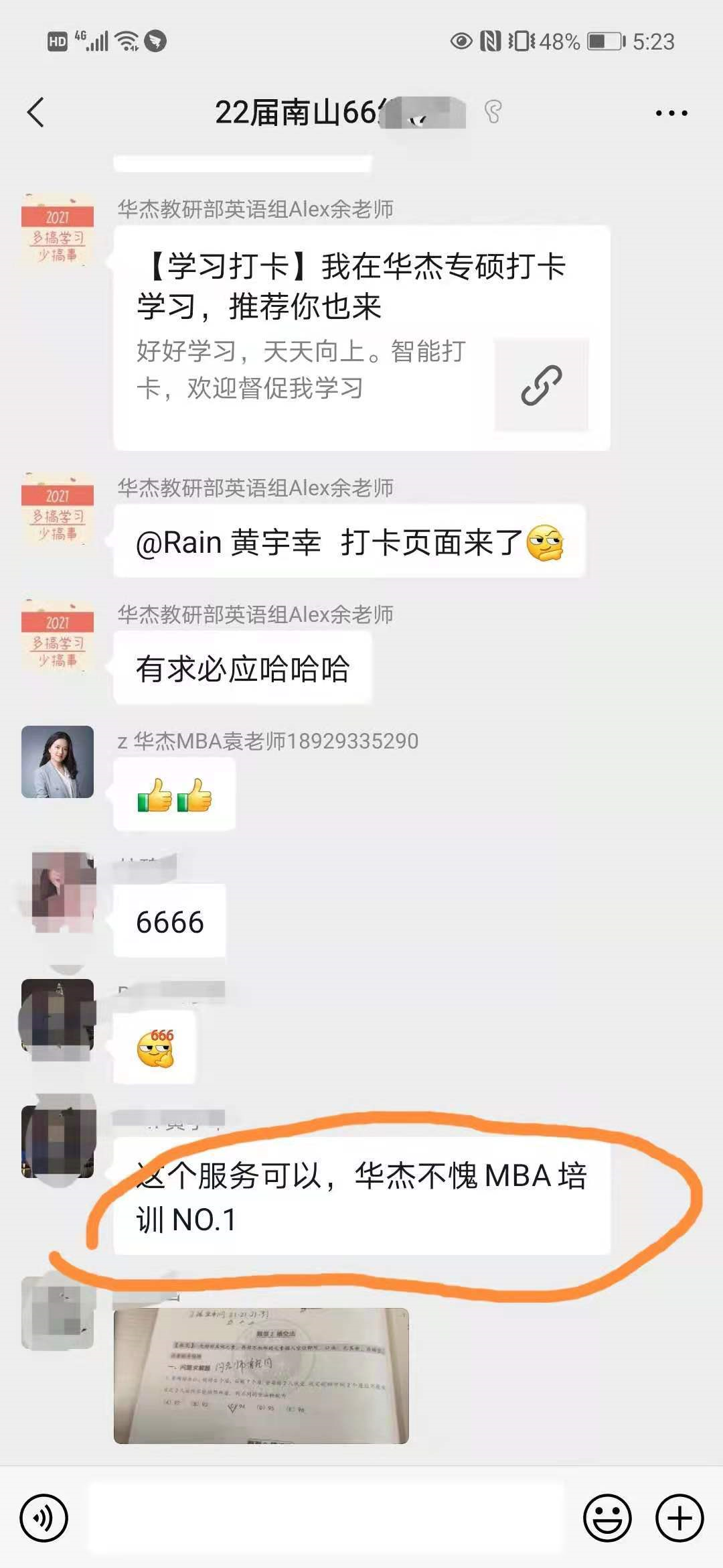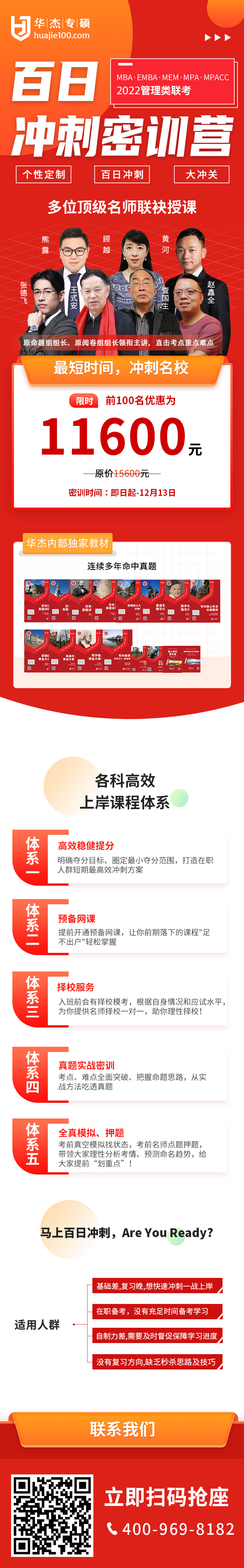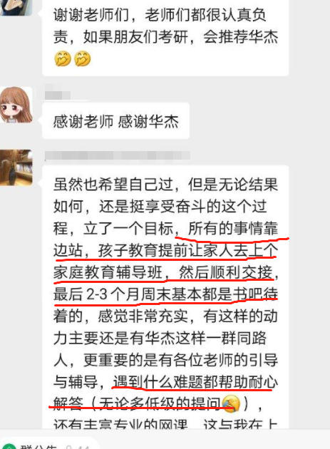 考研最大的问题就是坚持不下来,刚开始兴趣高涨连学好几章,后面却往往逐渐泄气,但凡加入华杰《百日冲刺密训营》的学员,你就会拥有一个万能的班主任。每个阶段,班主任会提前把该阶段的学习规划表发给大家,每次开课前,还会在微信群通知按时学习,答疑解惑,另外群内的学习氛围也会带动你进步学习。 为你赢回时间,奋起直追,一站成硕。